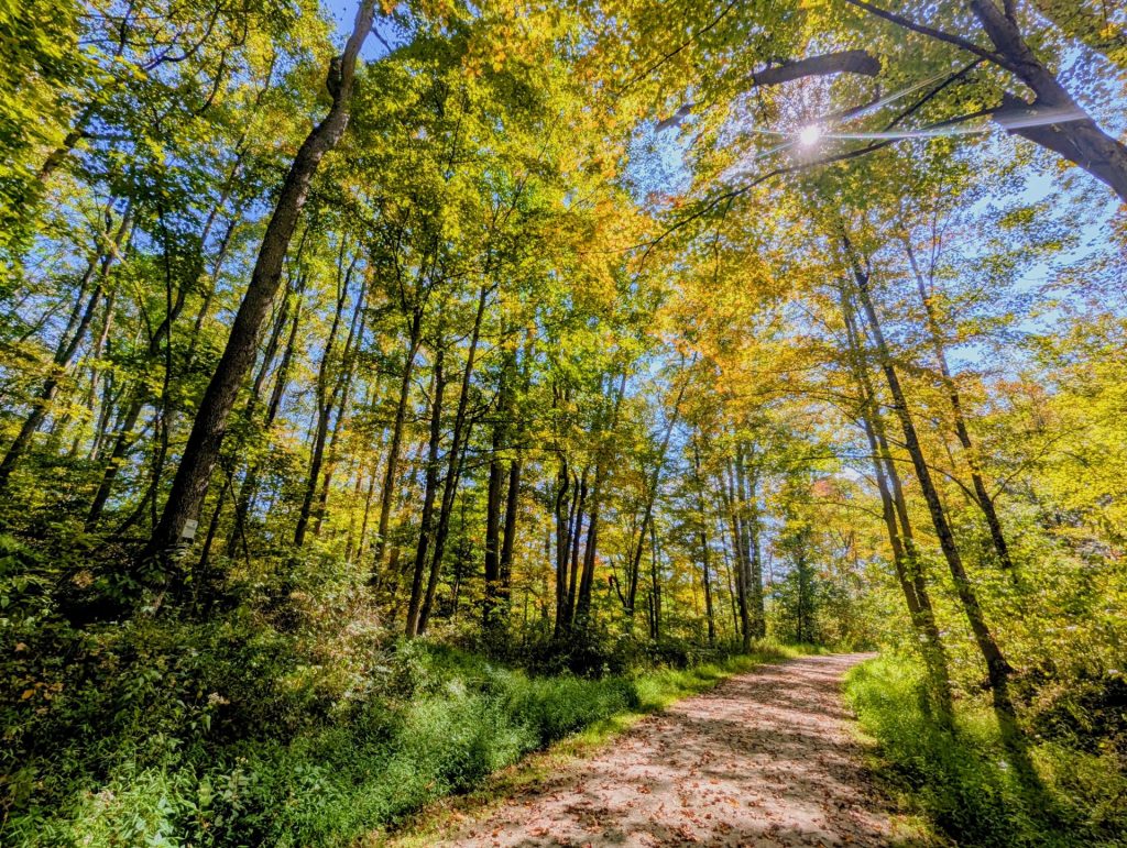 I stretch a bit, then jog over the first bridge and past the reservoir. Soon I’m surrounded on all sides by trees. Big tulip poplars, oaks, and mighty hemlocks reach up and over the wide path. Far below, Indian Creek rushes over the rocks, dropping into deep blue pools and flowing downstream to the Youghiogheny River. Birds flutter in the canopy, but otherwise the forest is quiet.