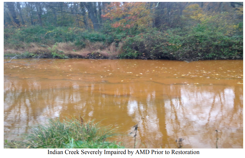 It’s hard to imagine this area as a busy industrial corridor, clogged with smoke and steam. But we’re not that far removed from the past – as recently as the 1990s, the water in Indian Creek was orange and toxic to aquatic life, thanks to the coal companies that exploited this valley over 100 years ago. Without MWA’s hard work to build the abandoned mine drainage treatment systems along Indian Creek, the water would still be polluted.